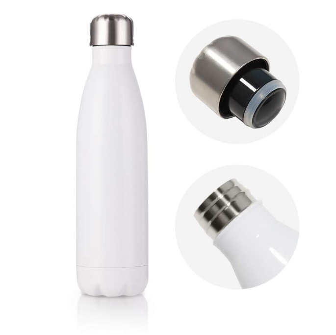 The 304 stainless steel used to create our premium blank sublimation bottle . They have a bright white polymer coating and are made to be used with a Bottle heat press or a 3D vacuum oven for sublimation printing.